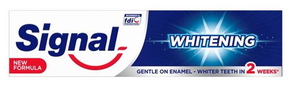 يعمل معجون سيجنال على ازالة الاصفرار والبقع المتراكمة على الأسنان كما أنه يحافظ على بياض الأسنان الناصع ولكنه لا يستطيع ازالة الجير والمواد التي تترسب على الأسنان ويتم استخدامه مرتين يوميا.